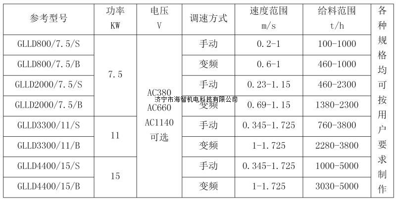 2、給料機功率7.5 KW、11 KW、15 KW;