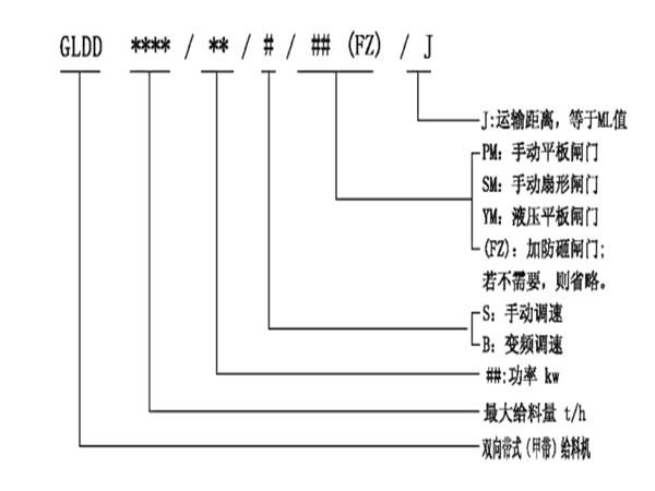 雙向帶式(甲帶)給料機型號說明:
