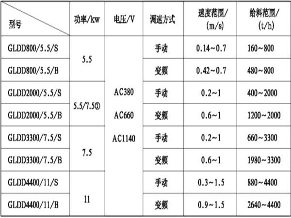 雙向帶式(甲帶)給料機技術參數(shù):