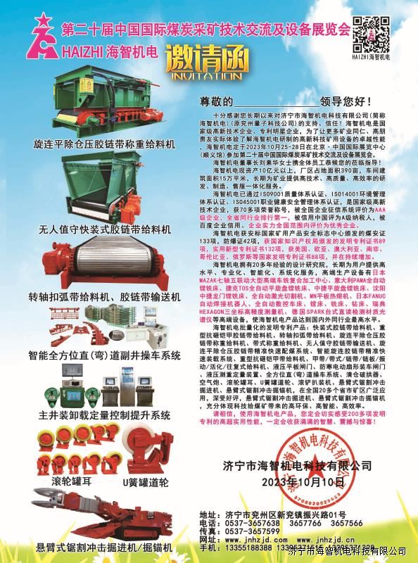 > 邀請函-第二十屆中國國際煤炭采礦技術(shù)交流及設(shè)備展覽會2023.10.25-28